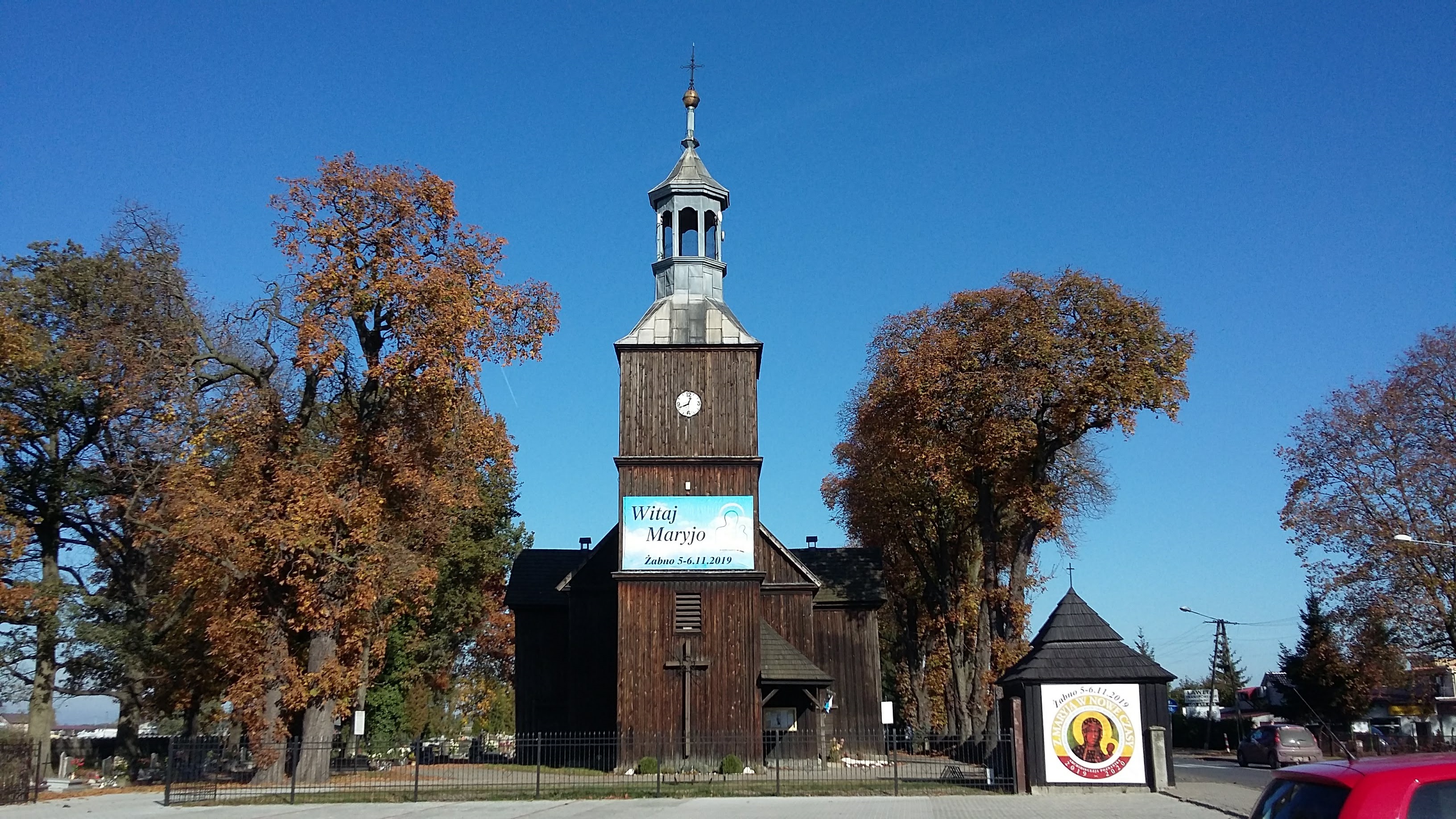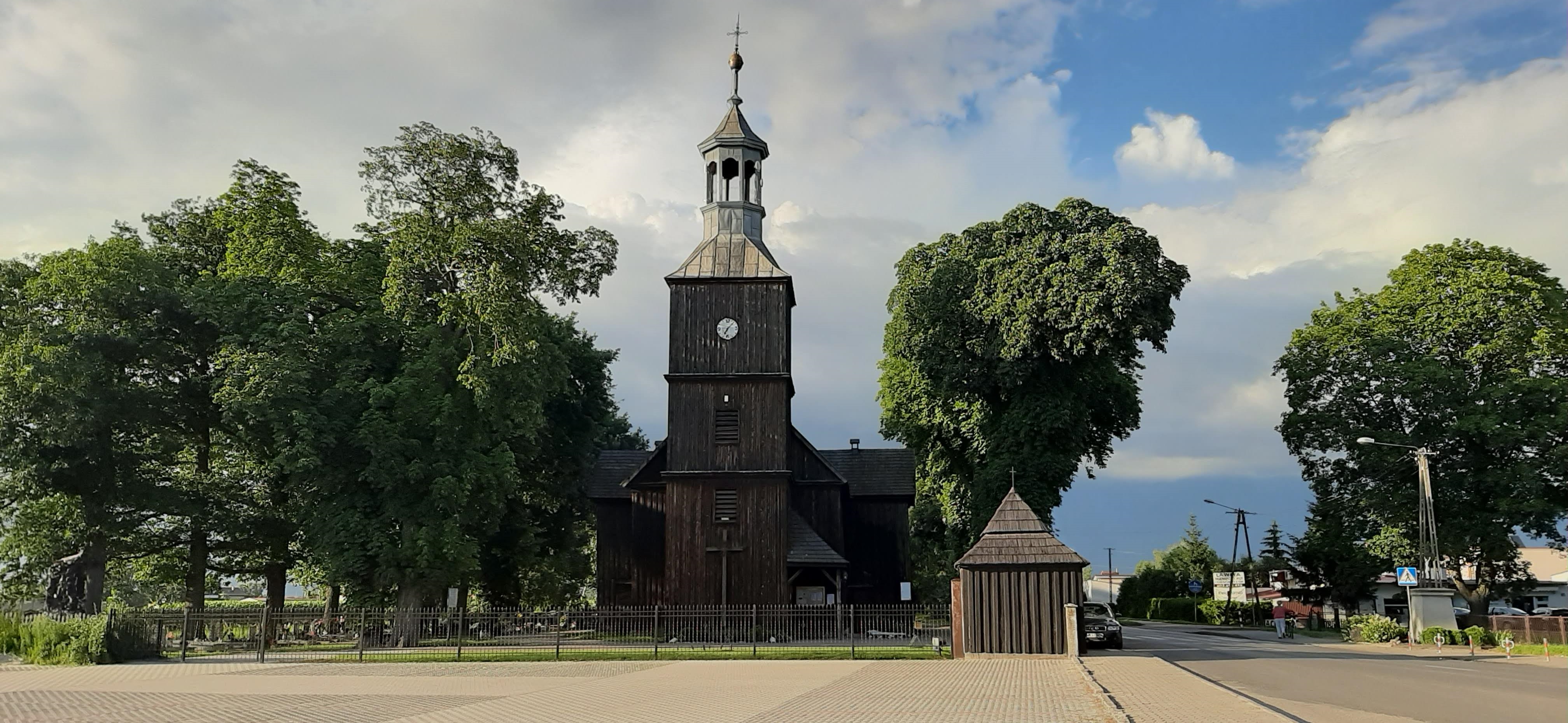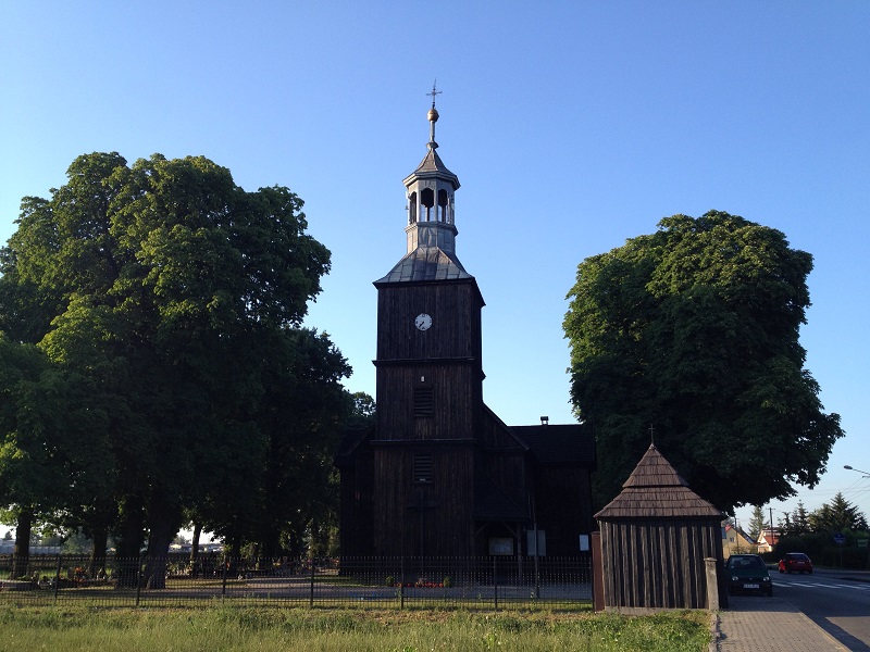 Zapiski w roku 1685 wspominaja , ze za kolatora Waclawa Zaleskiego, chorazego leczyckiego, stal kosciól drewniany p.w. Trzech Króli.